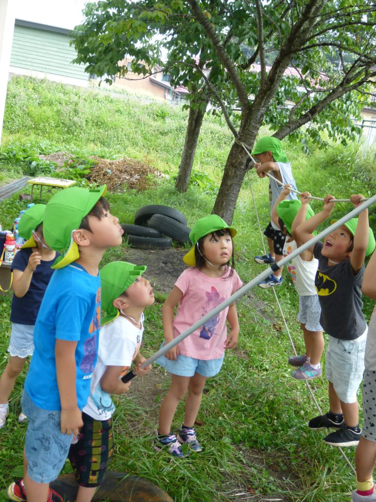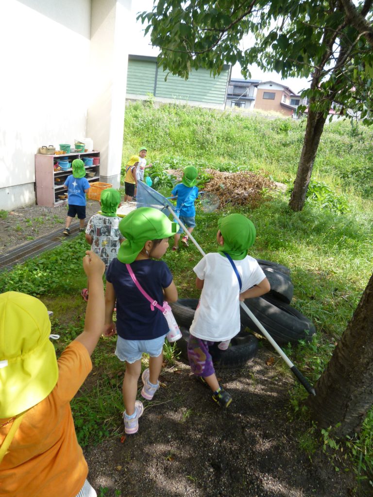 セミの抜け殻探しから次はセミを捕まえたい子どもたち。