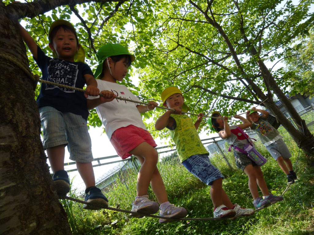 わくわく広場に行くと必ずと言っていいほどみんながロープを渡って忍者の修行をしているみたいです。