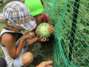 毎日、年長さんが水やりをして大切に育ててきたすいか!