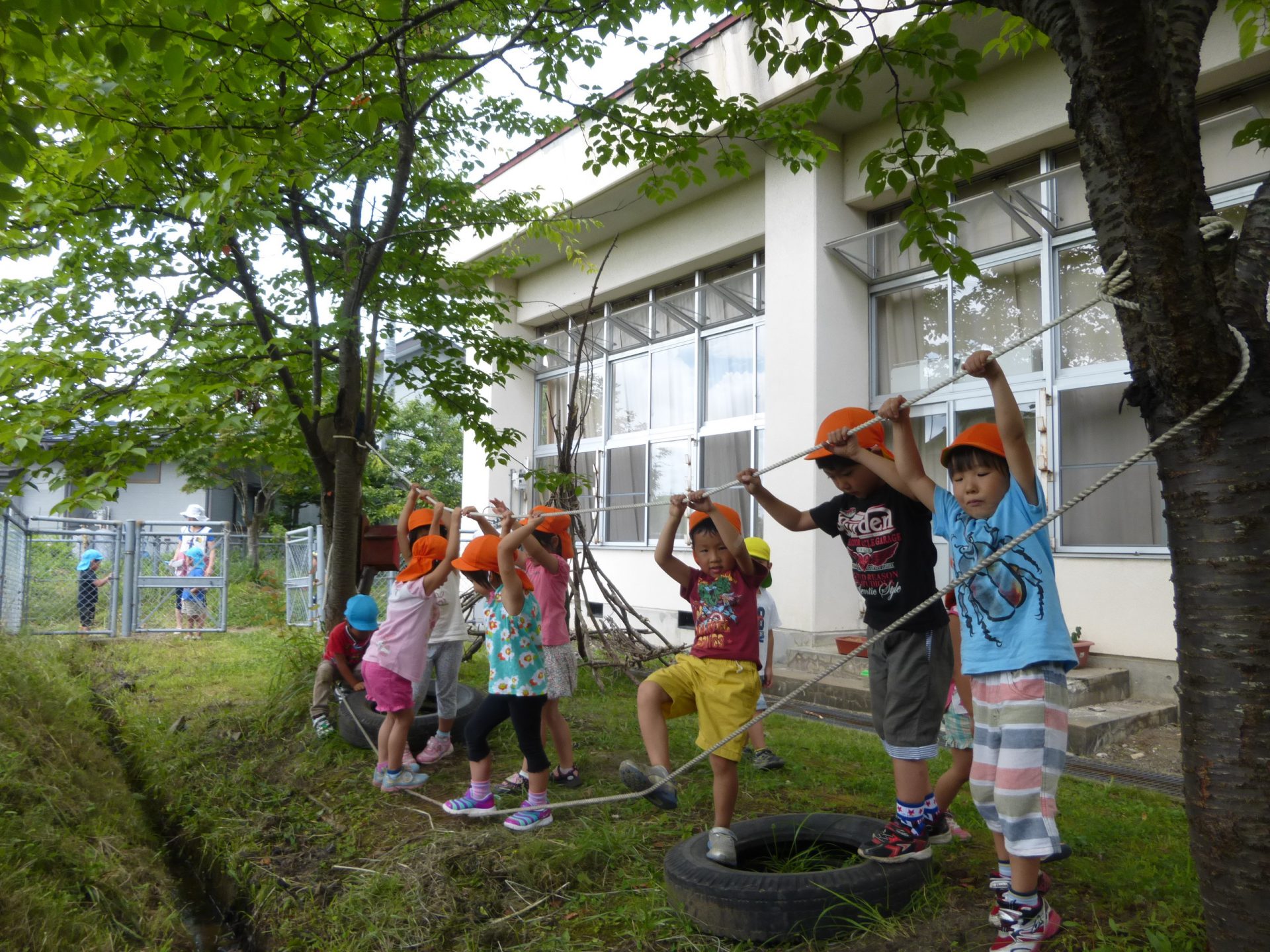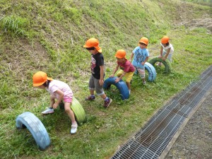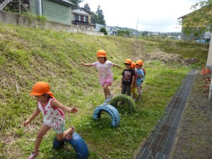 ワクワクひろばにはロープが張ってあったり、タイヤがあったりと遊び場が広がっています。