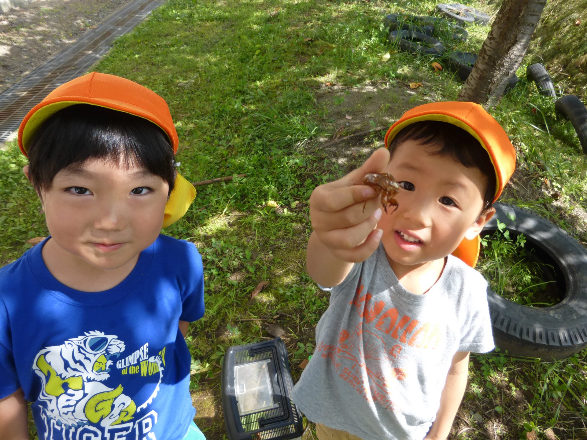 セミの抜け殻探しも大好きな子ども達。