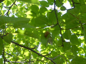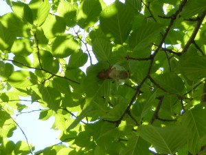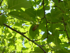 セミの抜け殻は高い所に付いていて、手が届きませんでした。