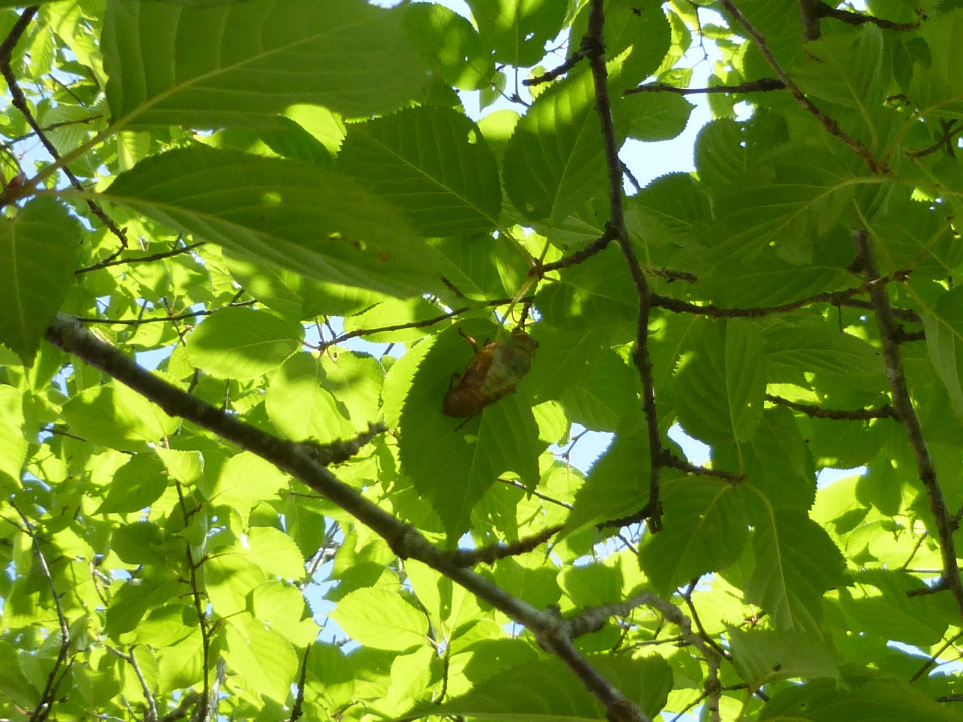 「あったよ」と見つけましたが、なんとそれは羽化している途中でした!!