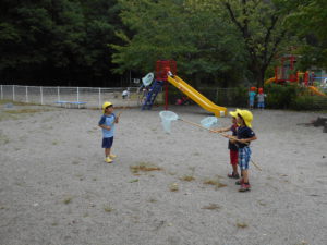 ・お友達と一緒に補虫網をもちながらトンボを追いかけるの楽しいね。