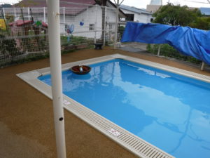 子どもたちは、贈り物のことなどすっかり忘れて、最後のプールを楽しみます。