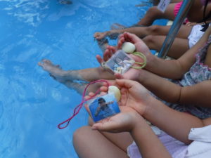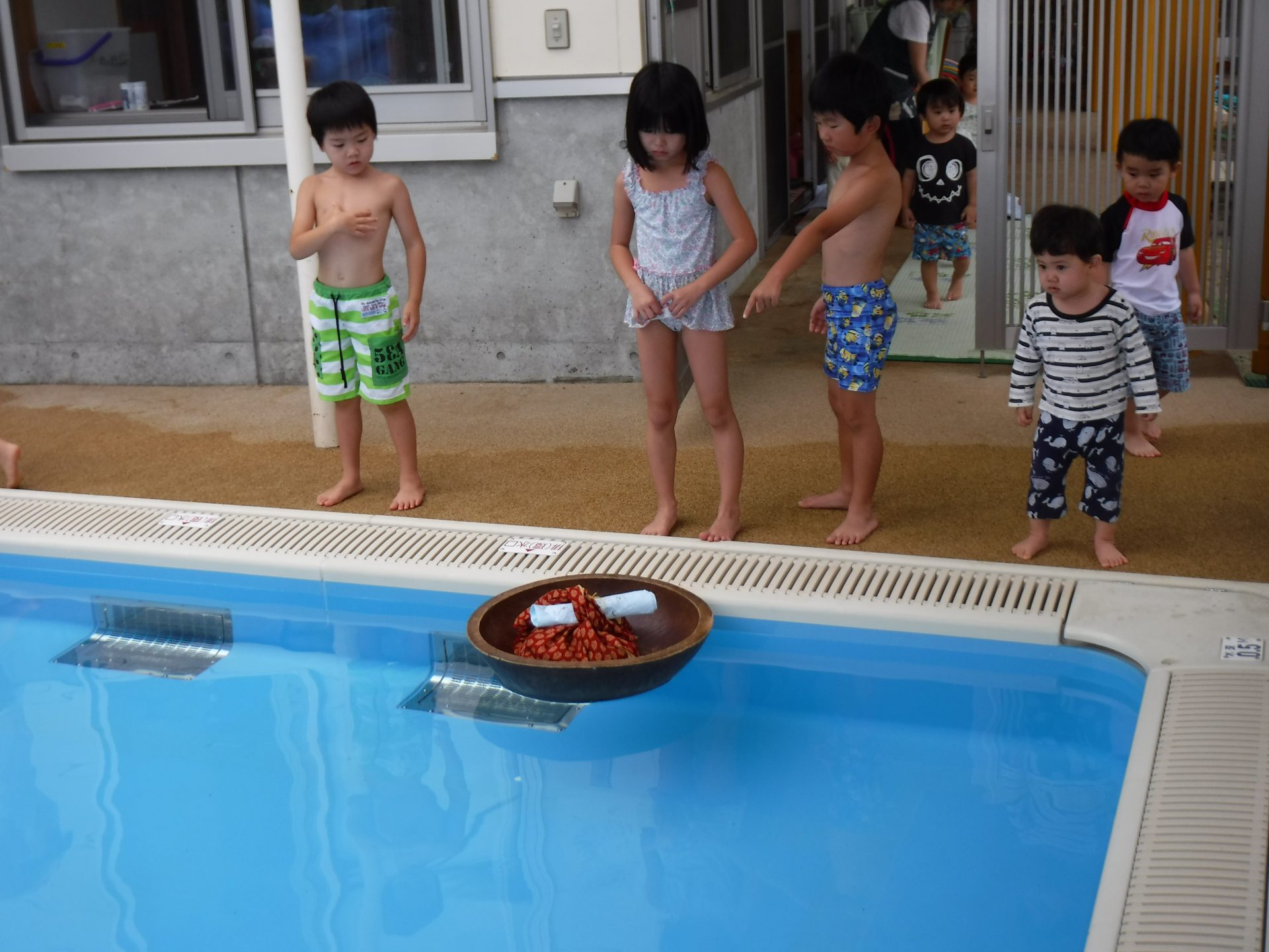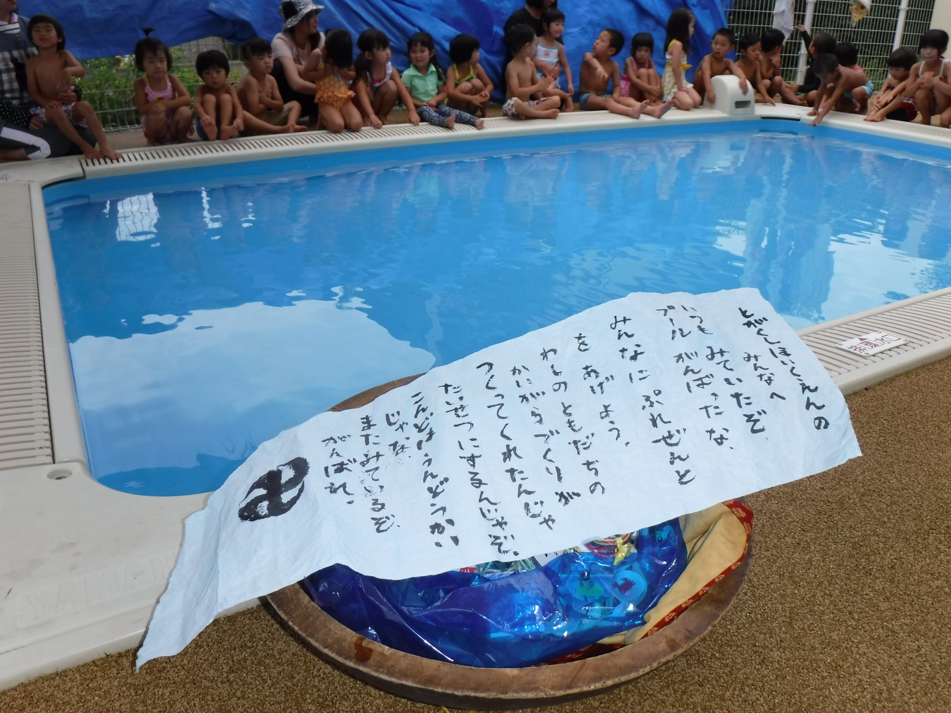プールでたくさん遊んだ子どもたちへの、贈り物が入っていました。