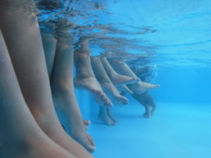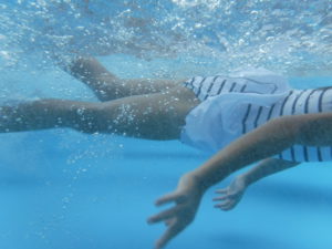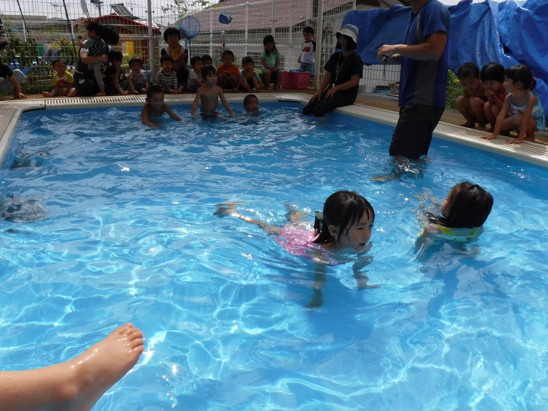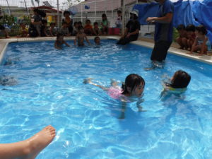 ただプールに入っているだけでなく、気温や太陽の力の変化を身体で感じている子どもたちです。