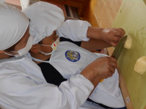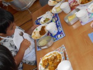 後は、給食の先生が調理してくれるのを待つばかり・・