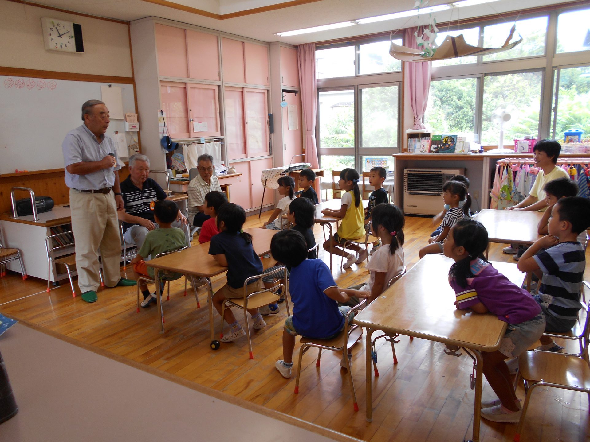 来てくださったおもと会(老人会)の方々の中に、園児のおじいちゃんがたまたまいたのですが・・