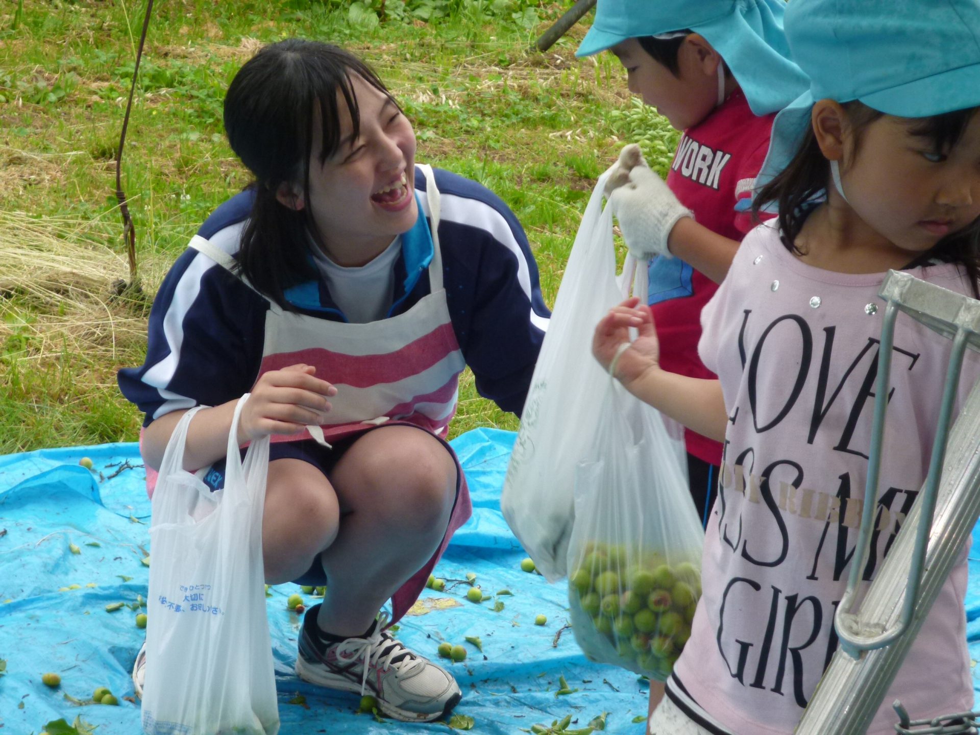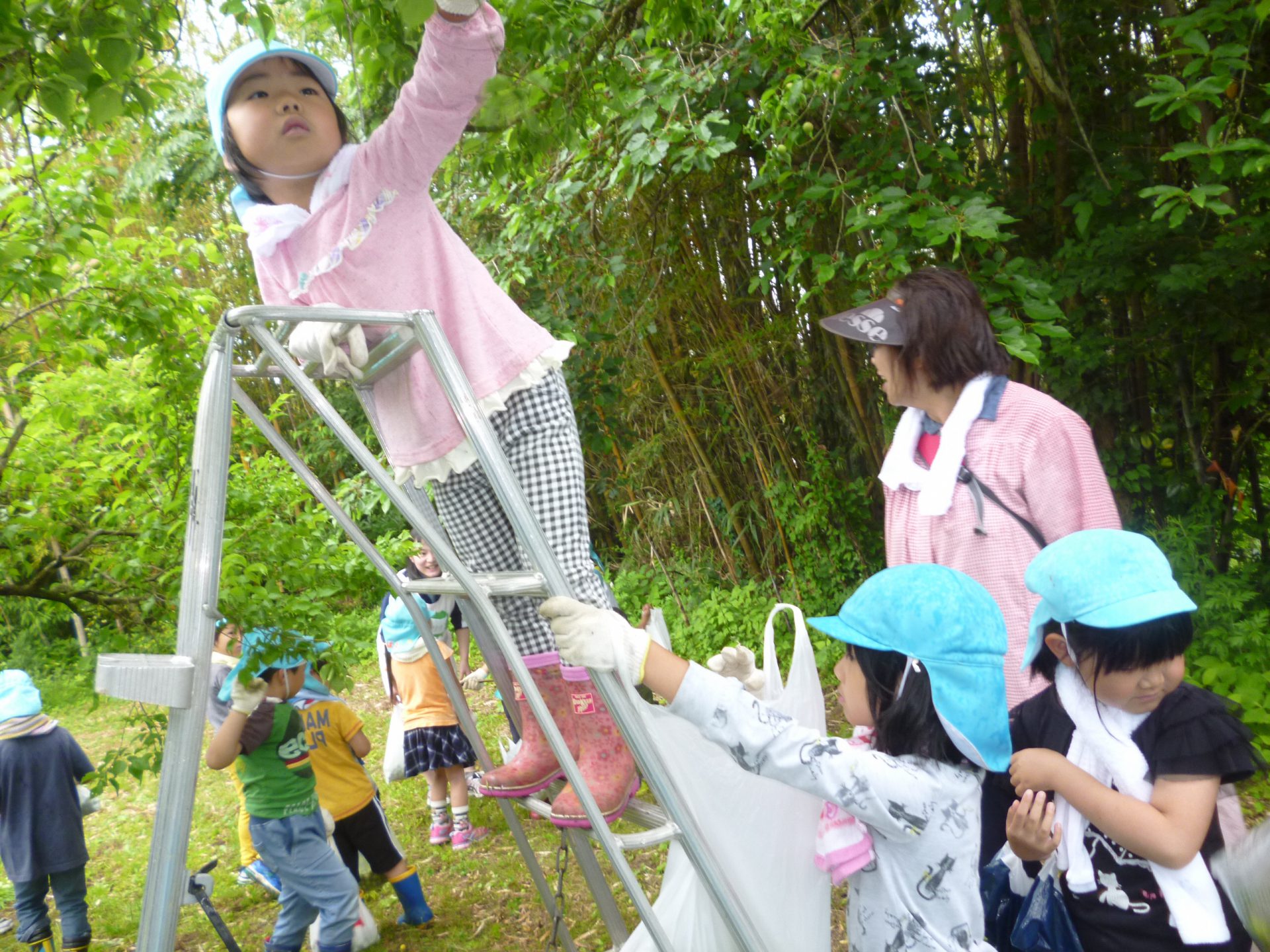 すこし大きい脚立にも登って梅を採りました。大きい梅、小さい梅、力を入れないと採れない梅や、簡単に採れる梅、奥に生っている恥ずかしがり屋の梅などもありました。