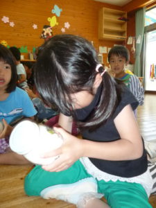 「小さくて、、取りにくいな。。。」 「ここをぐりぐりするとすぐ取れる!先生!」 「なんか、色が違うよ」「あ‼‼‼ふんとだ!‼‼」
