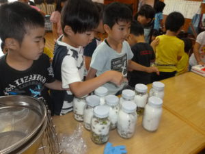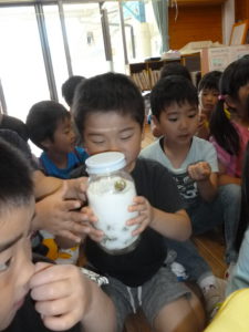 瓶に詰めるまでの大変さや苦労を少しでも体験し、瓶の中でどのように変化していくのか楽しみのに子どもたちと見ていきます。