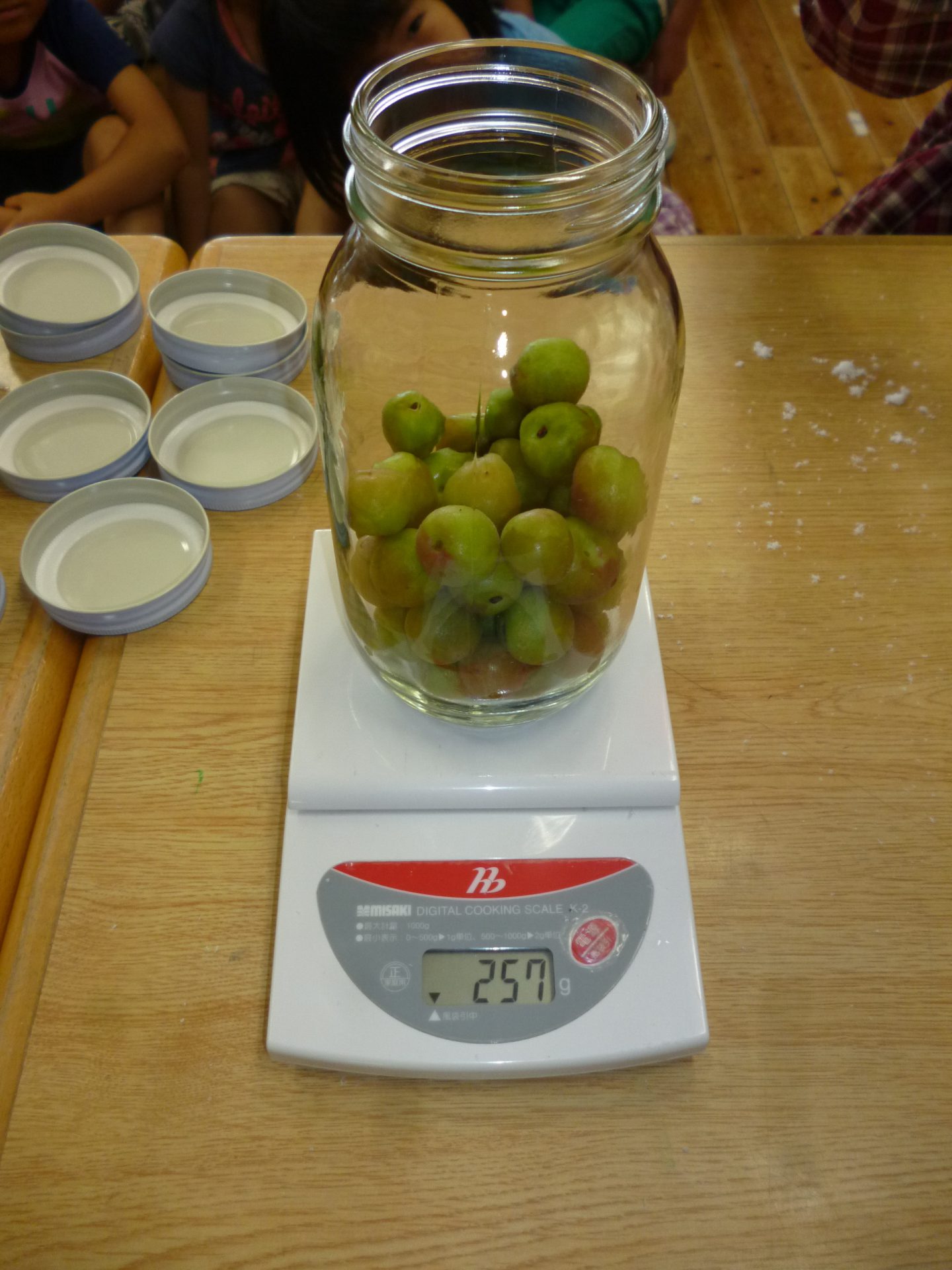 ⇧ 綺麗になった梅を瓶に詰めます。