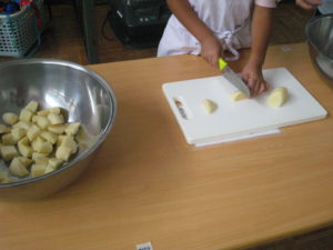 ・クッキング体験をしたことで野菜独特の匂いを感じ、玉ねぎに触れ涙が出ることを知ることができました。
