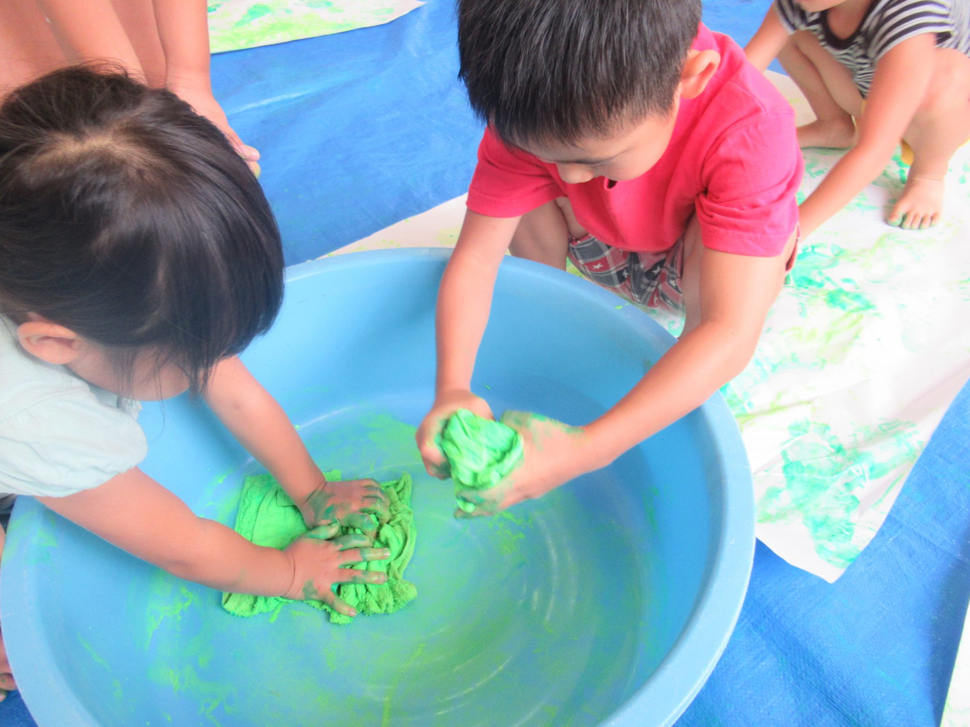 『絵の具』という素材に親しみ、工夫して遊んでいました。