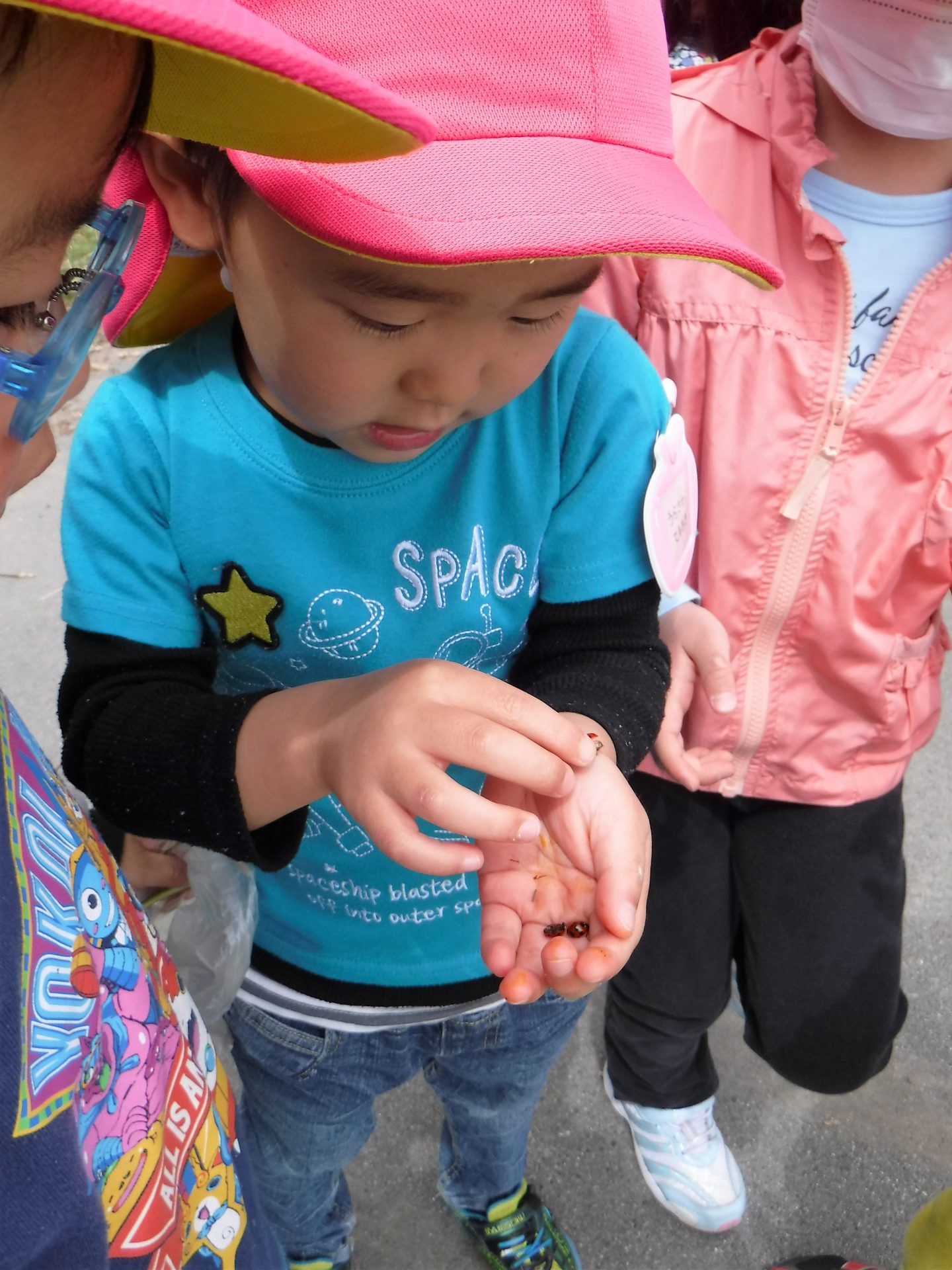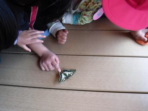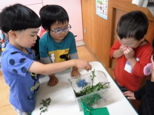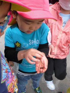 虫が得意な子が優しく、「大丈夫だよ~!触ってみて?」と教えてくれて