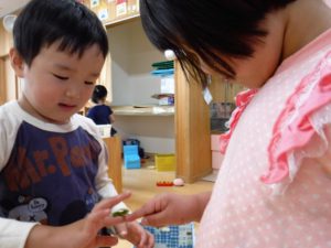 触るのはちょっと苦手だった子も友達が触るのを見ているうちに