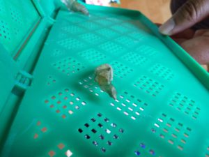 かいこの為に桑の葉を取ってきたら、くわこがくっついていました。