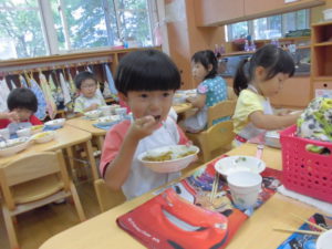 色や形、感触を味わい、最後に味覚も味わって、また子どもたちの新しい気づきになったように思います。