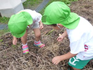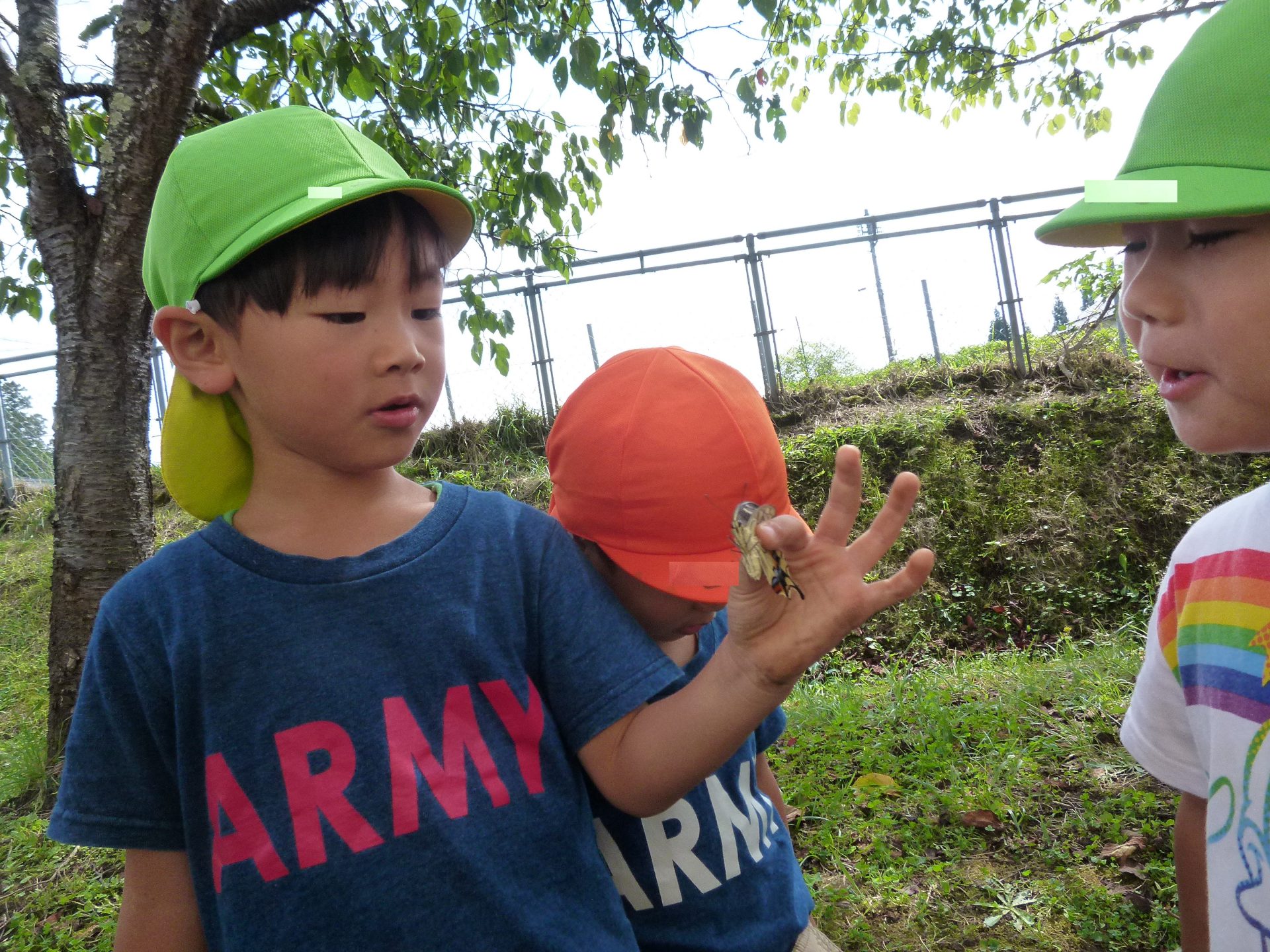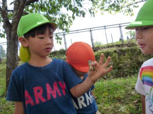 “ミーンミーン”と元気よく鳴いていたセミの声から”リンリーン”と涼しさ感じる声に変わってきた柏原保育園。トンボも飛んですっかり秋の季節に囲まれています。