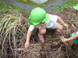 「今日もたくさん虫を捕まえるぞー!」とわくわく広場が大好きな子どもたちです。
