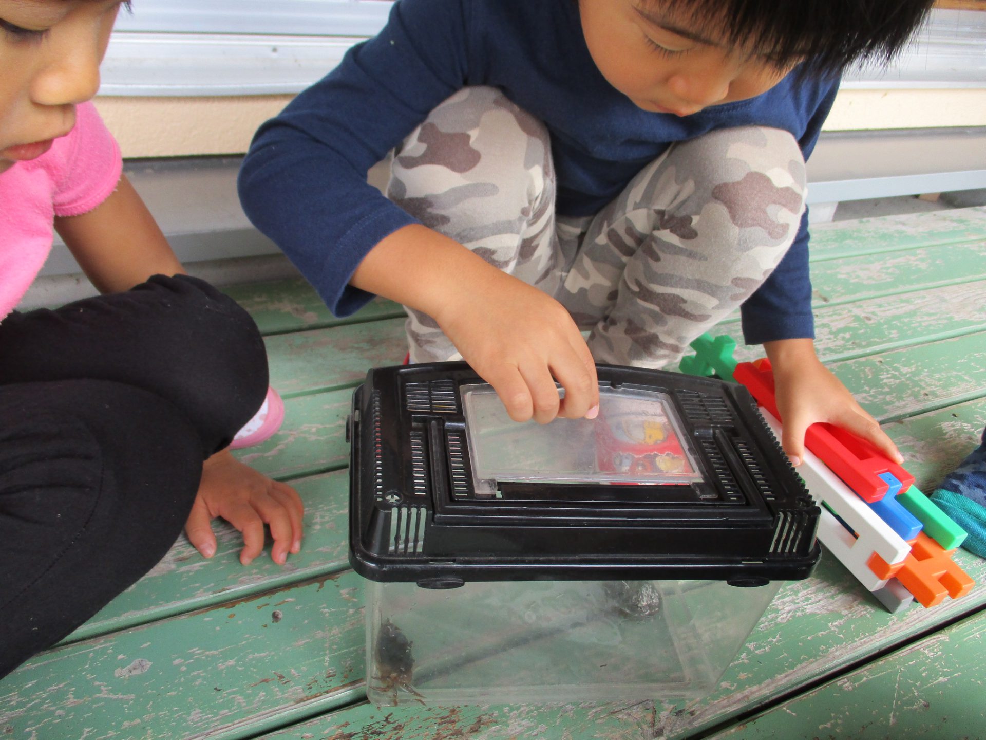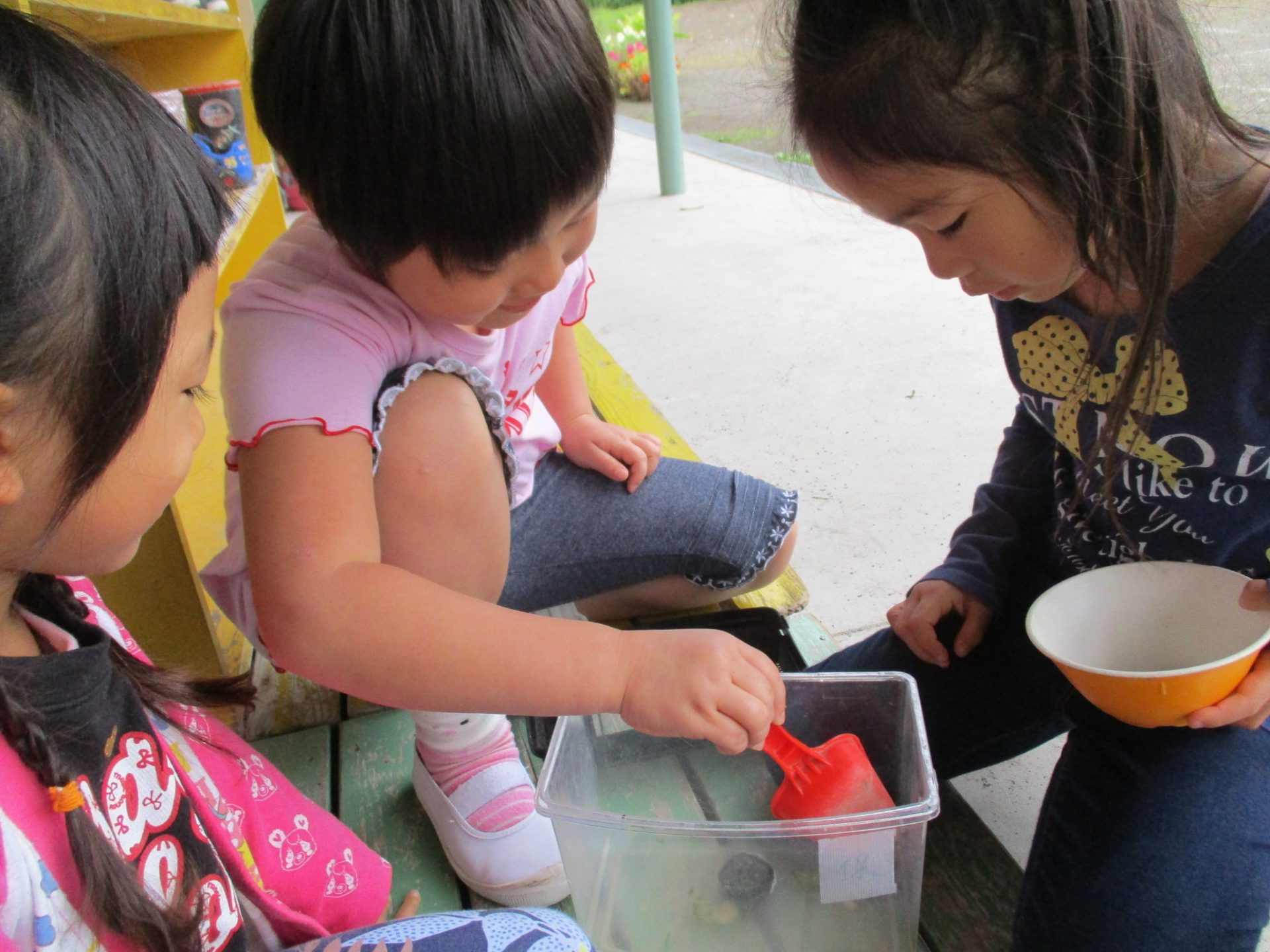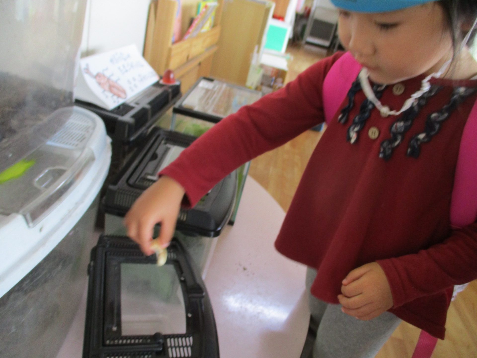 飼育ケースの中に餌がないことに気がついた子が言いました。