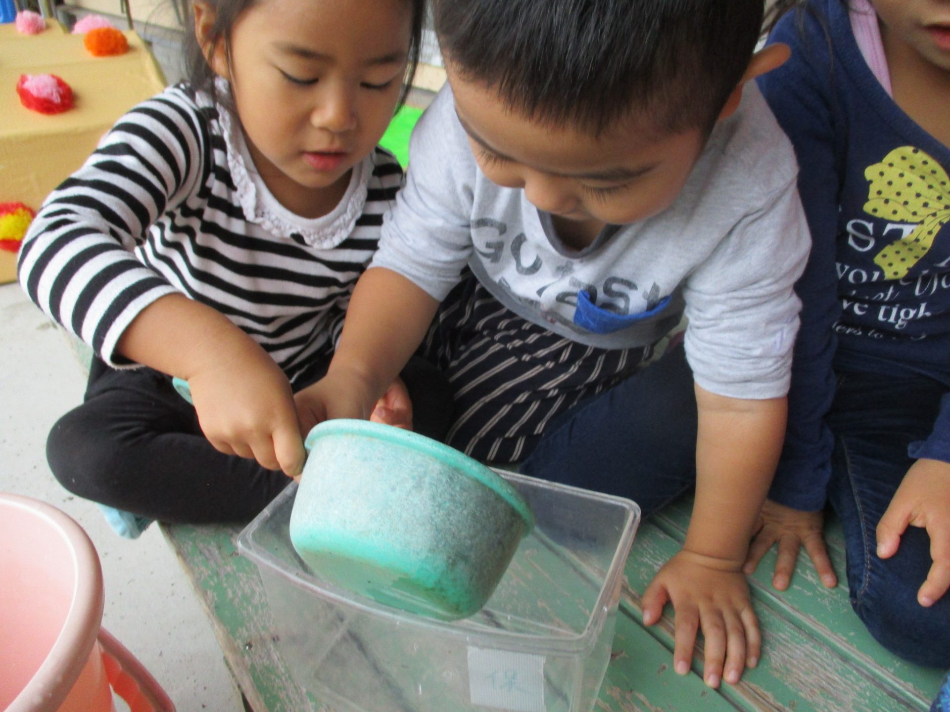 うんちが出ていたのを見つけた年少さん。