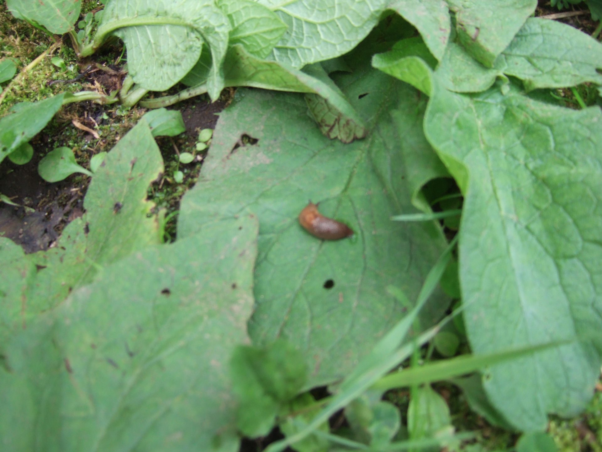 触るのは怖いけど、葉っぱを持てば大丈夫。じーっとナメクジを観察していましたよ。