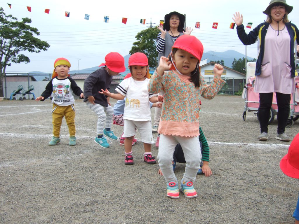 あんずさん、さくらんぼさんもお部屋で運動会のおうたを歌ったり、体操をして体を動かしたりして楽しんできました。
