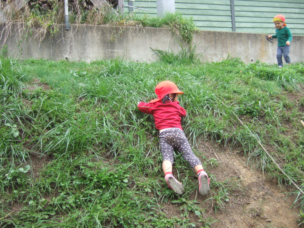 ぼくも!と保育士に手をかりることなく真似をしながら登ろうと挑戦していました!