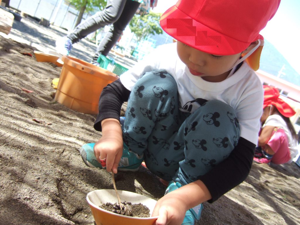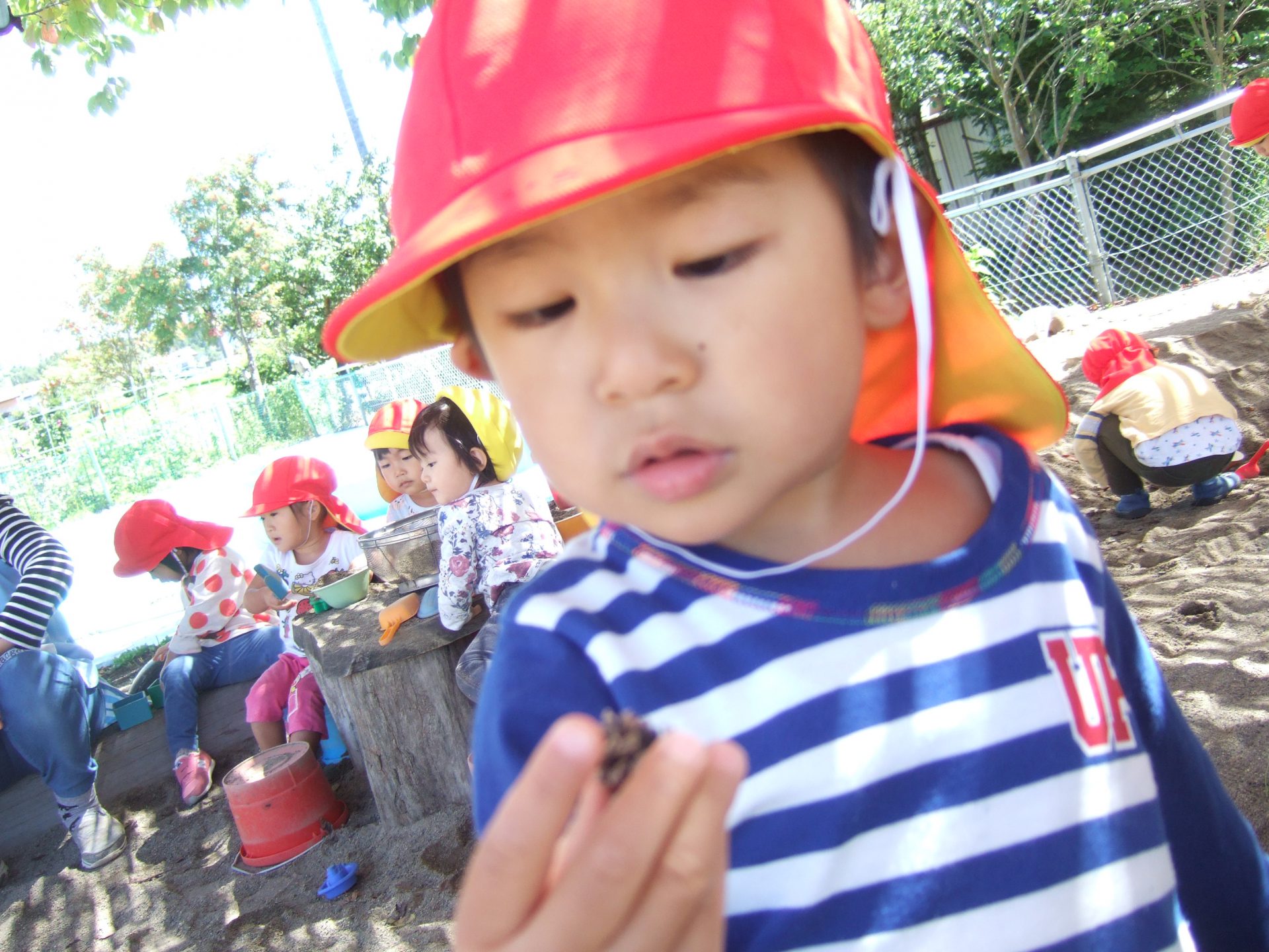 保育士がそ〜っと開いた手の中をそ〜っとのぞきこんでみました。
