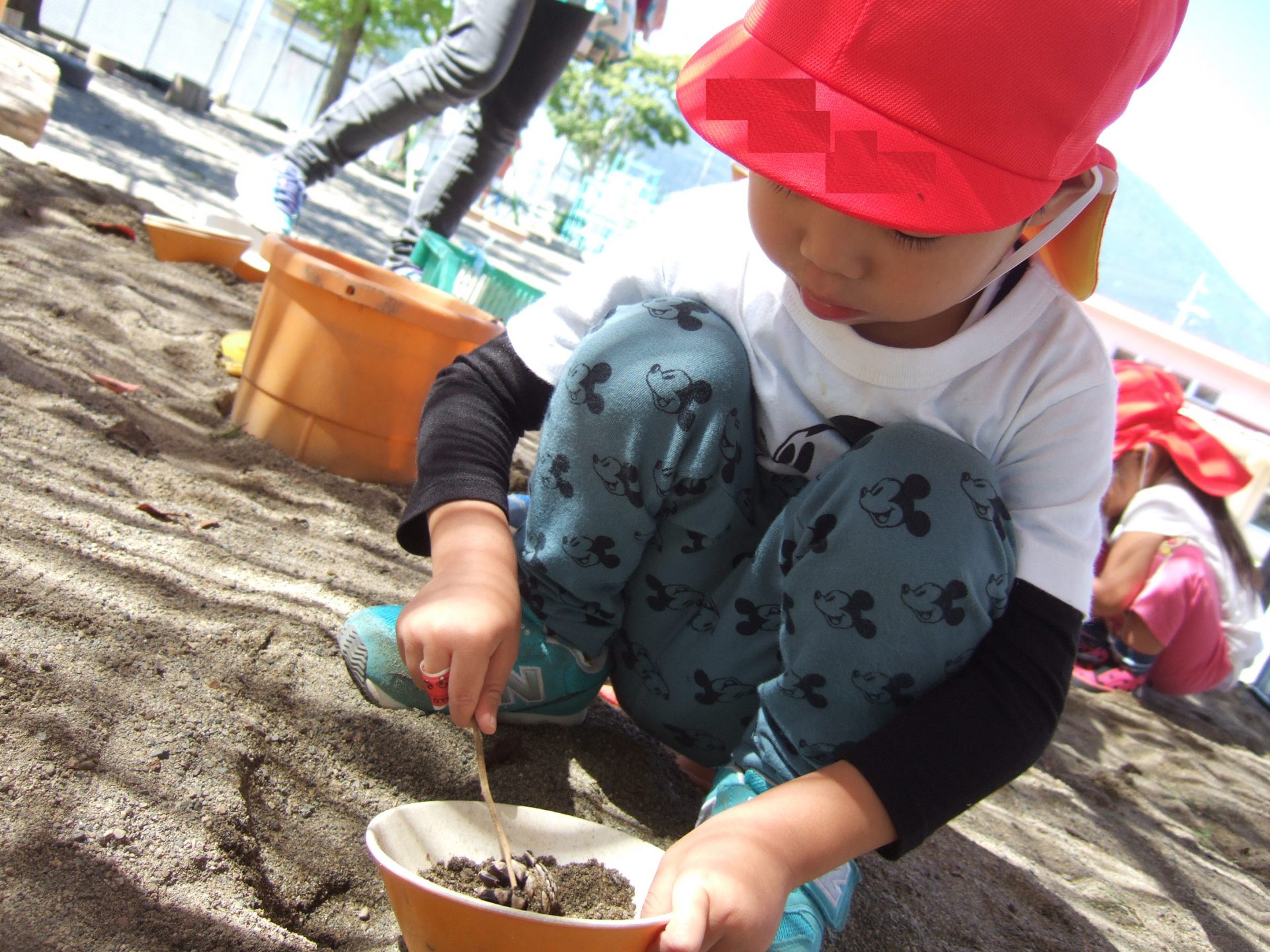 広いお砂場で遊んでいると