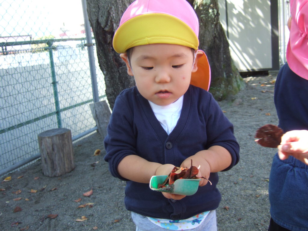0歳のお友達も、葉っぱをじっと見つめていました。