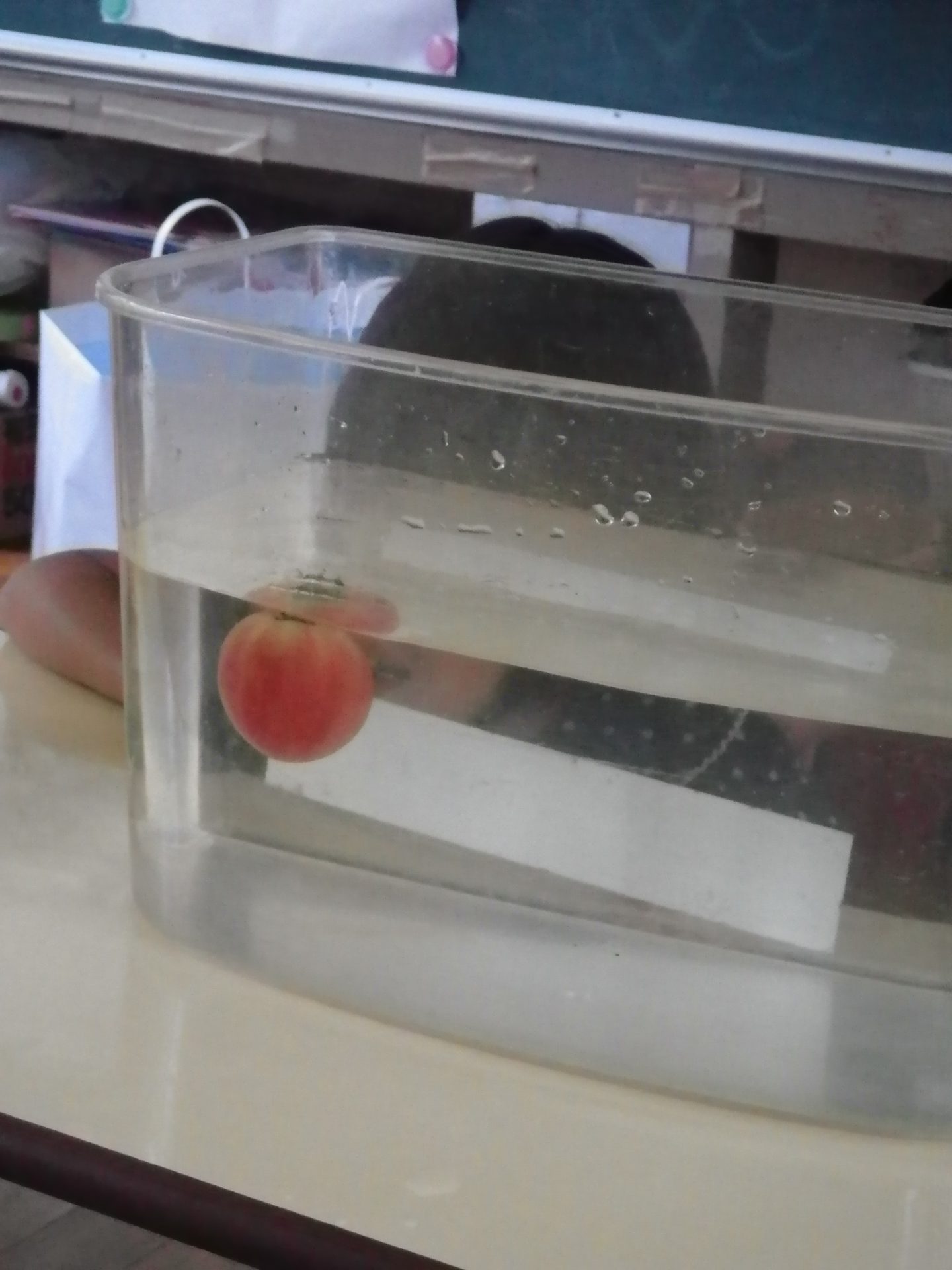 水に入れると…?浮いた!トマトは浮くんですね。