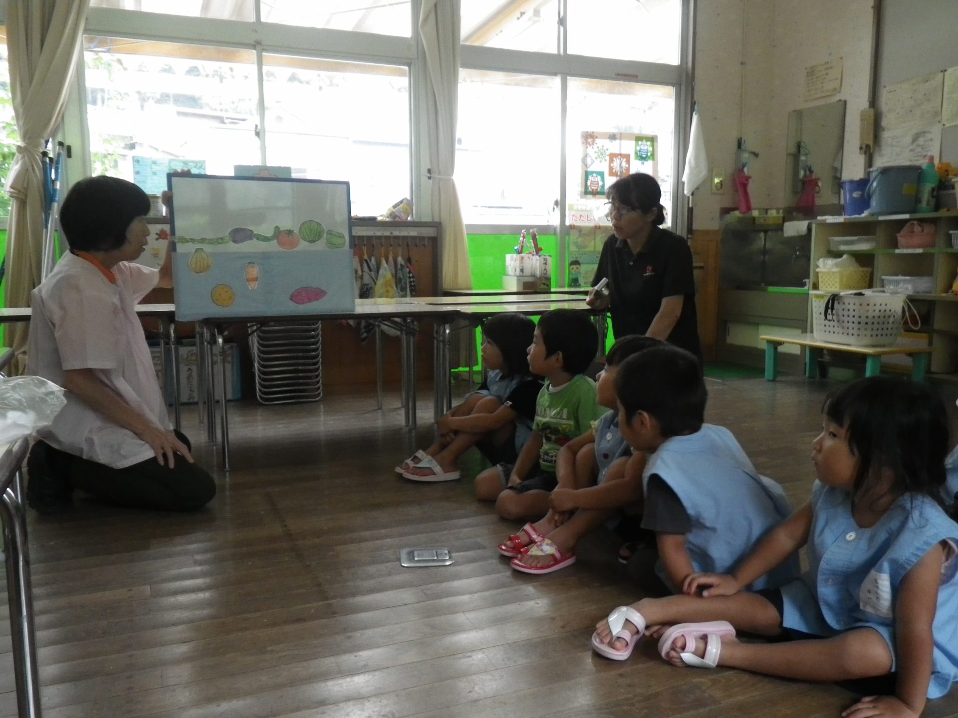自分たちが、作った野菜を中心に、全園児で野菜に触れることができた。