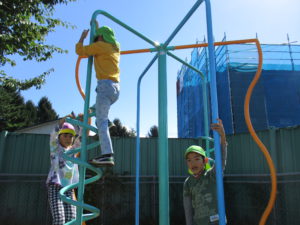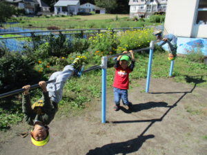 頑張って挑戦する年中さんに「持ち上げてあげる!」と年長さんが手伝ってあげている微笑ましい場面もありました。
