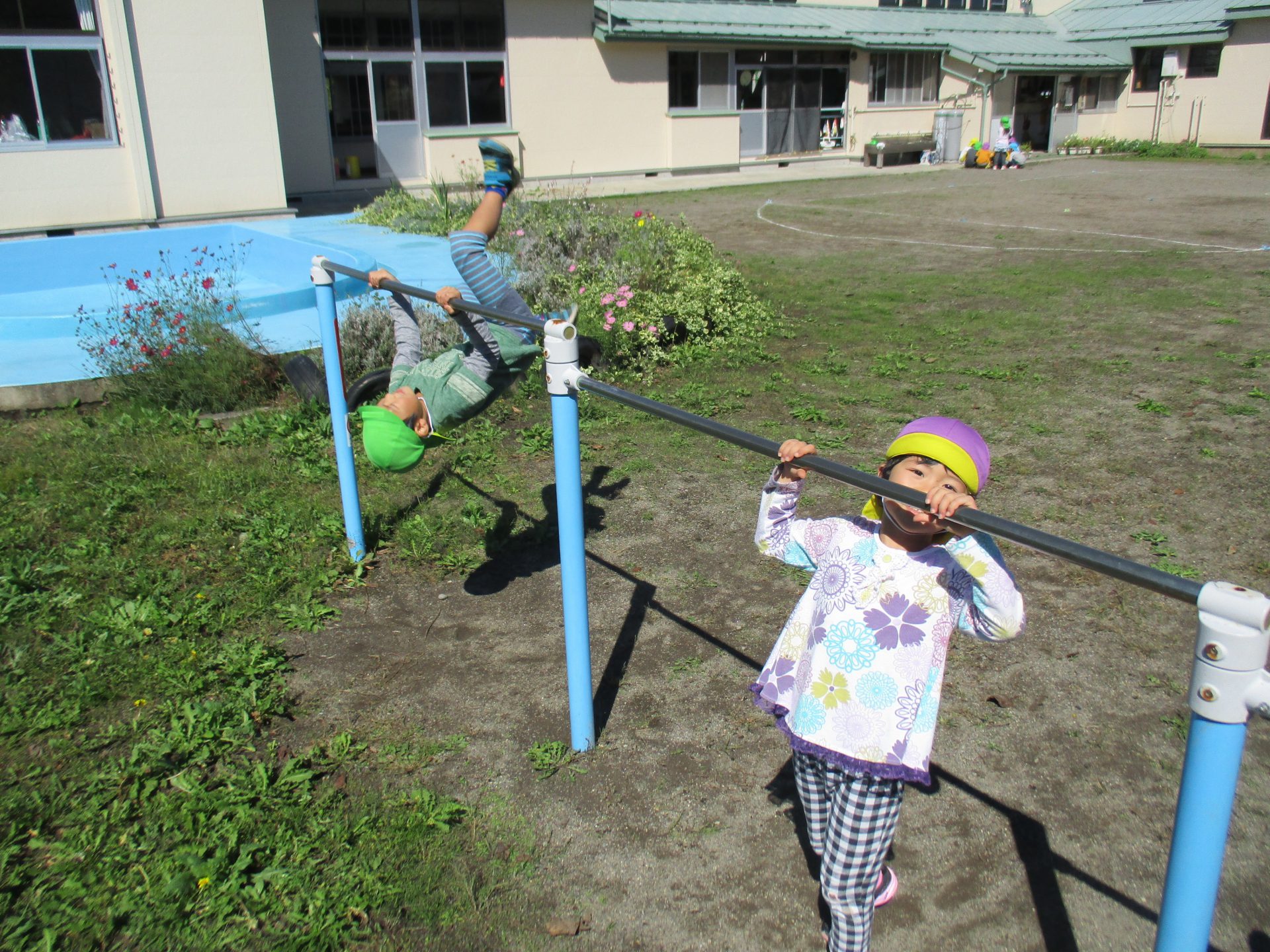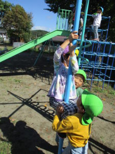 玉入れを片付けた後も鉄棒や登り棒に挑戦する子が増えました!