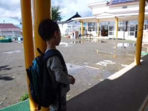 向こうの隅っこにいるお兄ちゃん。弟も心配そうです。部屋に入らず、お兄ちゃんは何を?