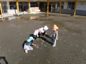 保育者が見ても卵は見つかりません。産卵の練習かな?