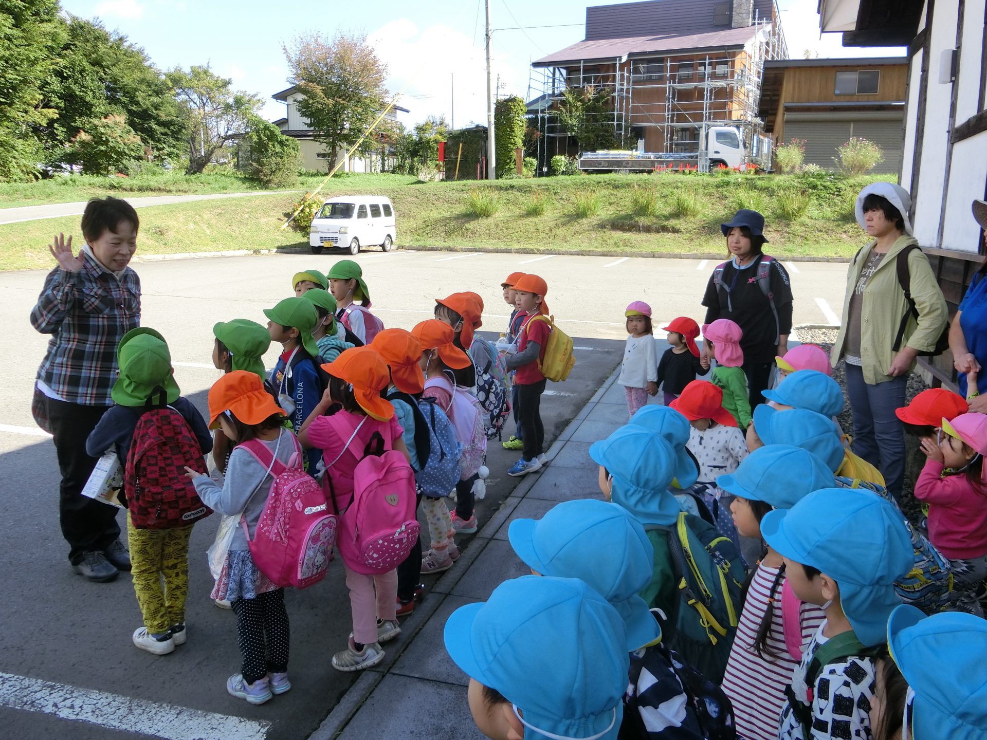 途中トイレに行きたくなり一茶記念館のトイレをお借りしました。「トイレかしてください!って言っていこう。」と声をかけてから貸して頂きました。トイレを済ませた子から遊びに行っていいよー!と伝え最後の子を待っていると「ありがとうございました!」の声が聞こえてきました。借りたらお礼を言う、当たり前のことですが自分からできたことがすごいですよね!初めての場所、初めての人に!最初の一人が挨拶すると自然に後の子も続いていました。園に帰ってからみんなに話し、すごいね!、えらいね!とほめあいました。