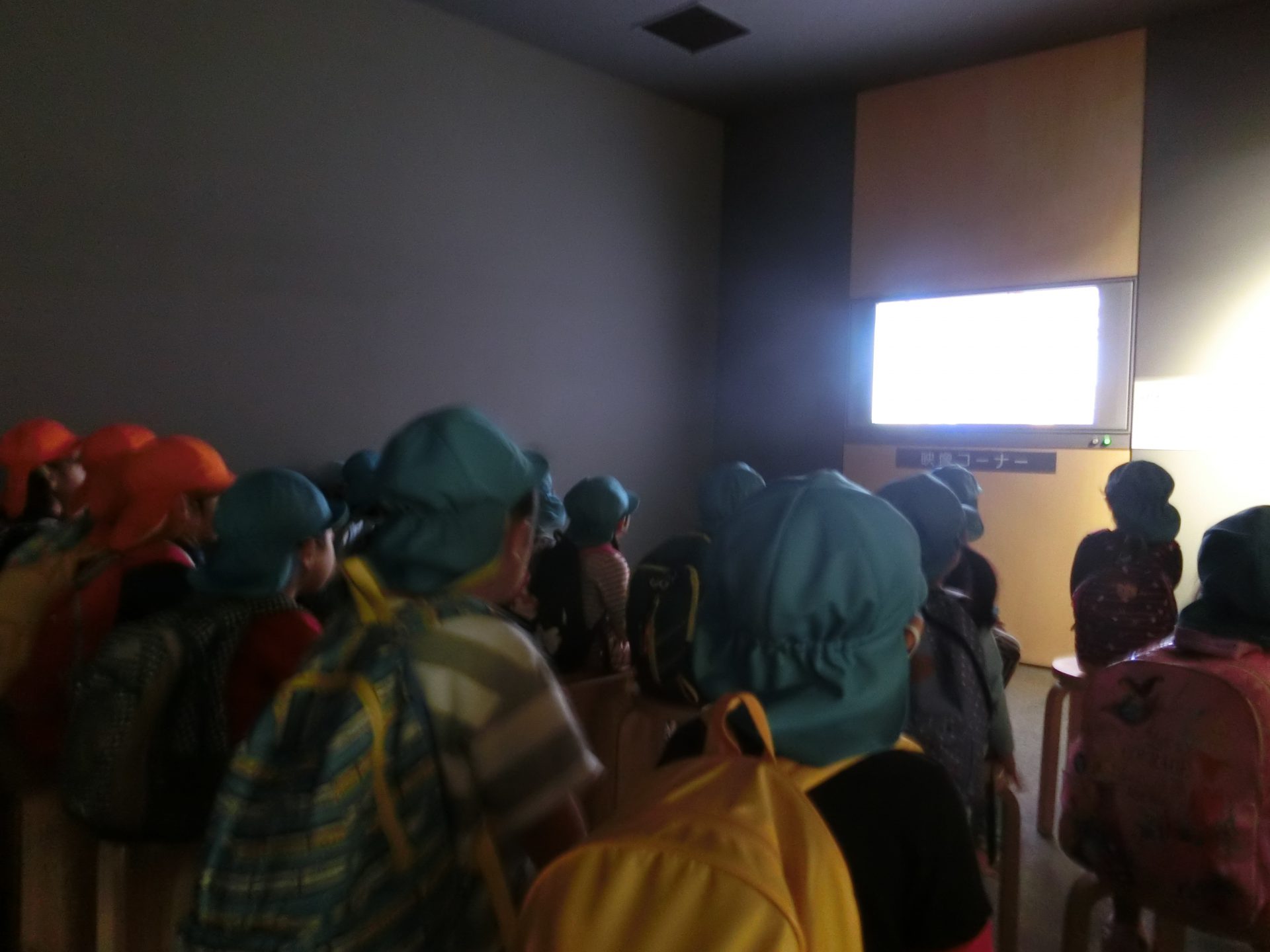 一茶記念館の前で園長先生と約束の確認をしました。今年は一茶記念館の方のご厚意で少し見学させていただくことが出来ました。3~5歳児のお友達で小林一茶の一生についてのアニメを鑑賞しました。