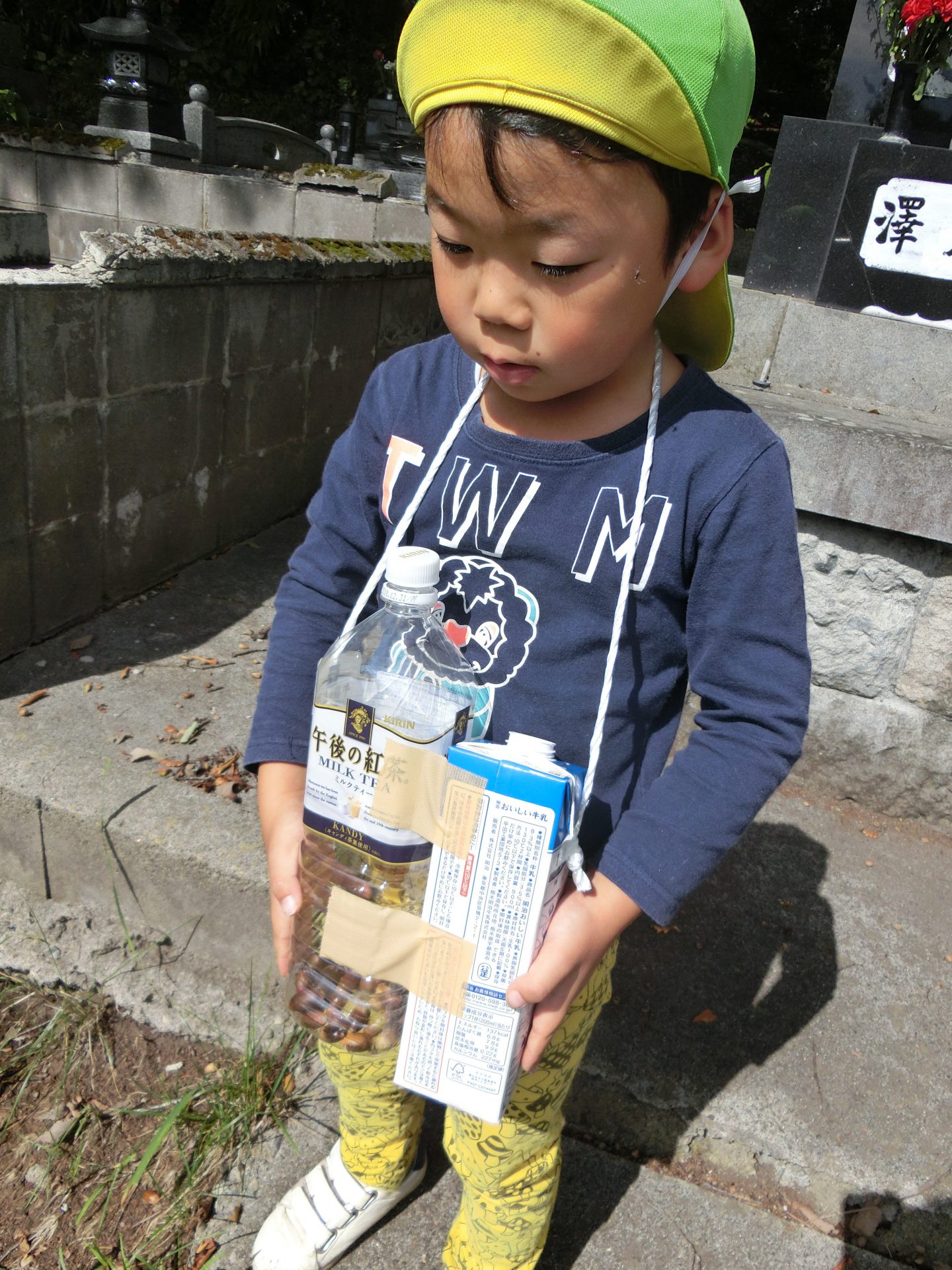 さくらんぼさんもペットボトルのお散歩バッグに宝物をいっぱい拾いましたよ!