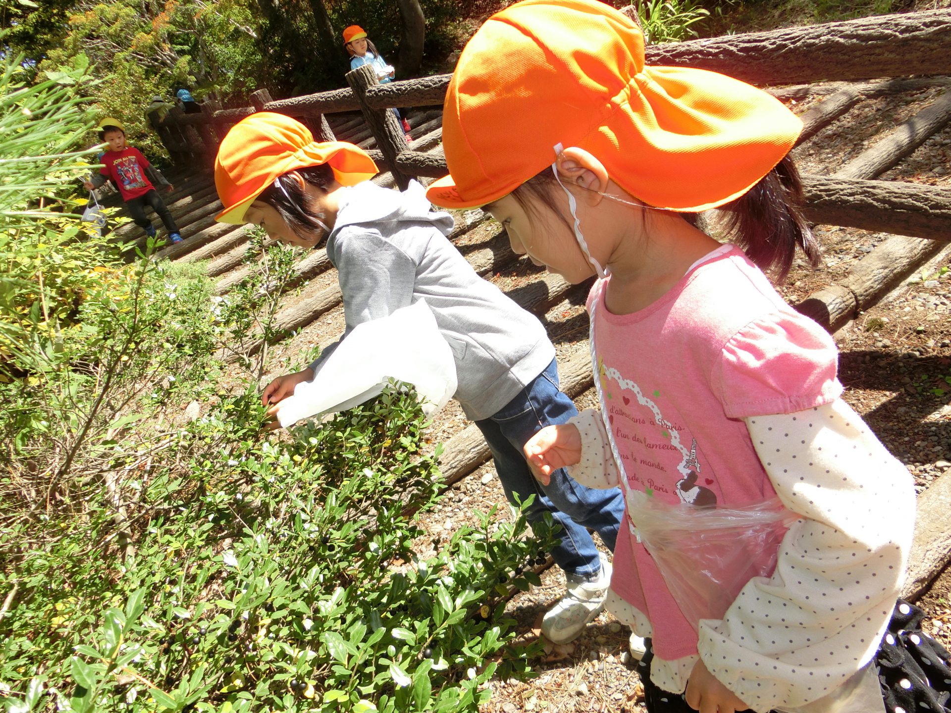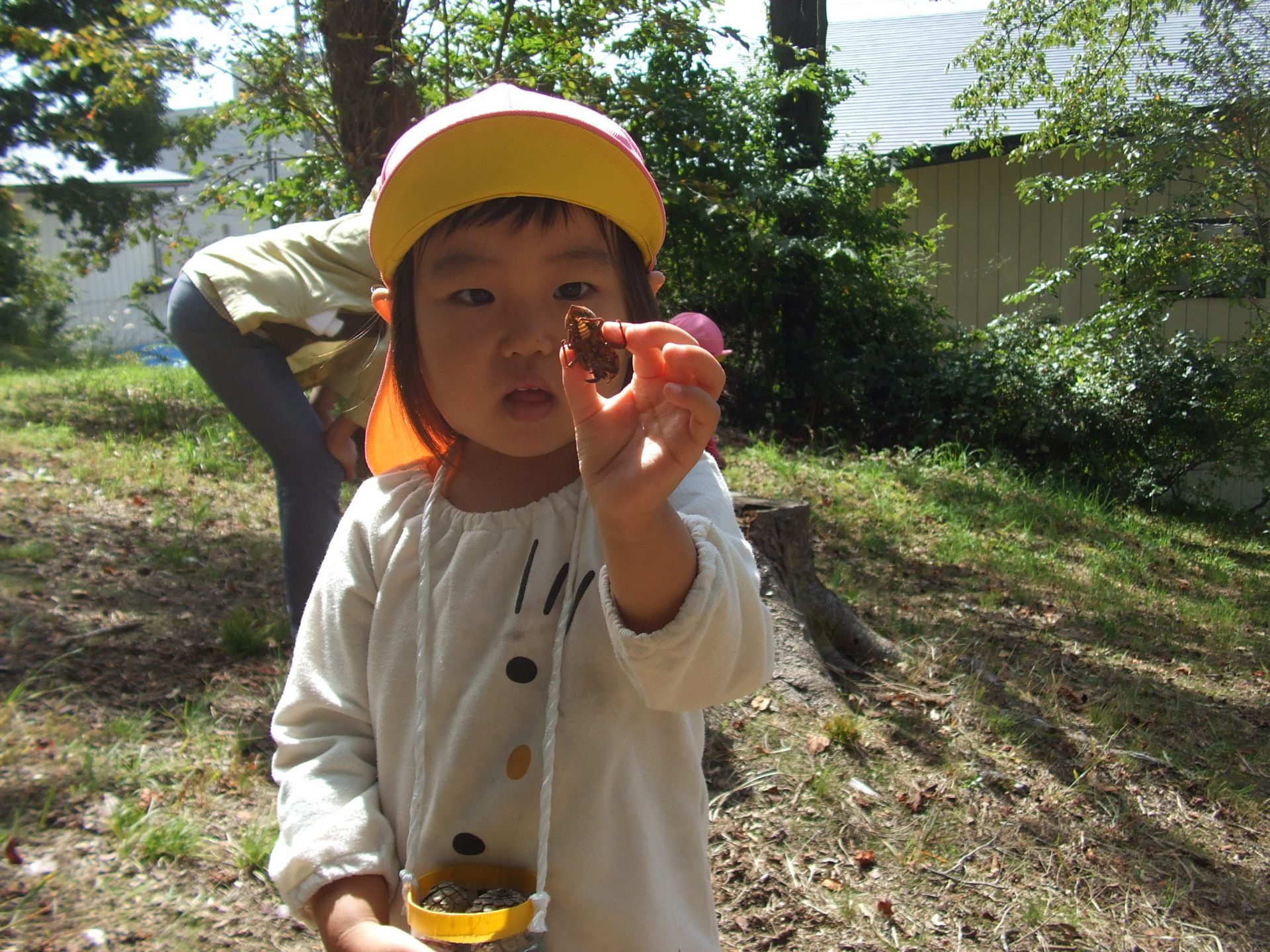 ぞうさん公園の方には実があまりなく、「先生!実あるって言ってたのに!」と一番に小丸山公園へ戻り、実を探していました。下見に行ったときの保育士の話を良く聞いていて期待を持ち、自分で目的を持って出かけていたのです。