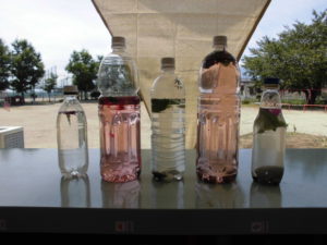 つぶした花を、お水の入ったペットボトルに入れると…