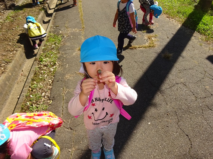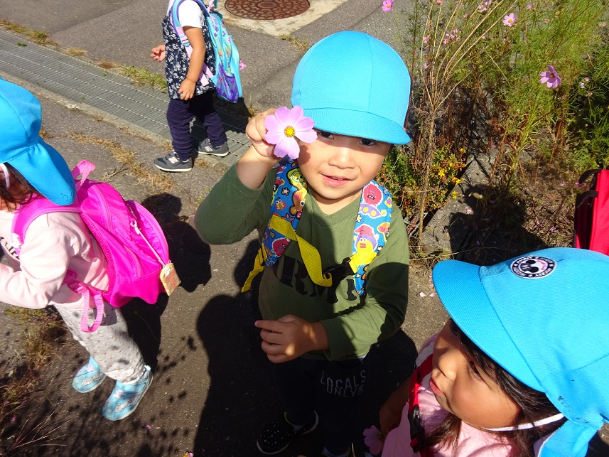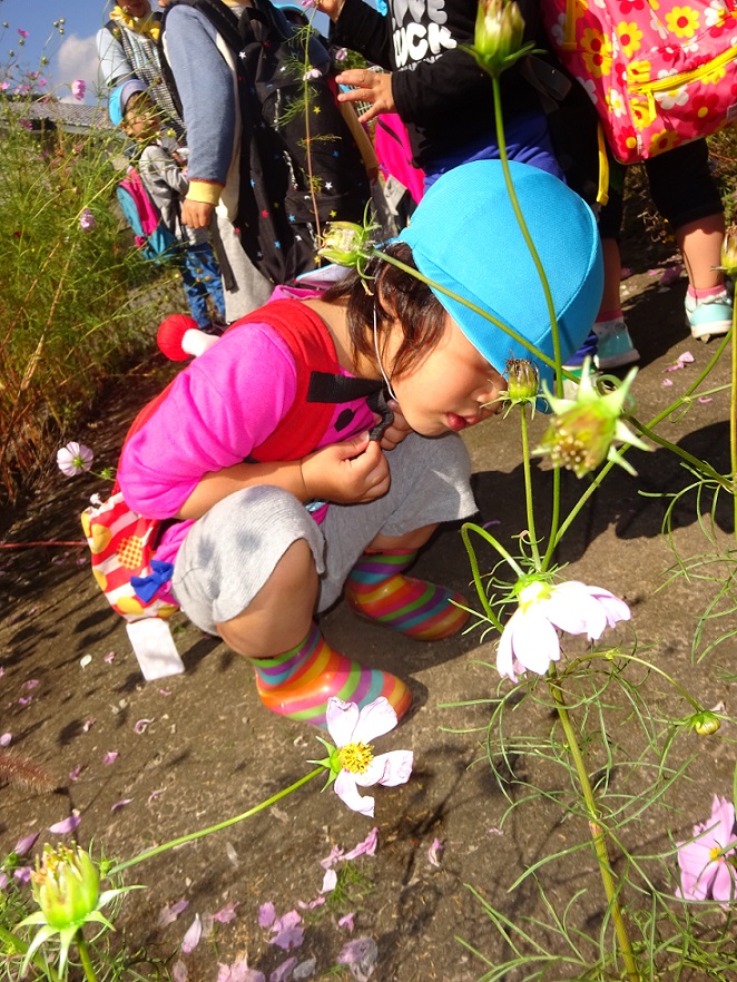 どんぐり拾いを楽しんだ後はコスモス畑へ行って遊びました。