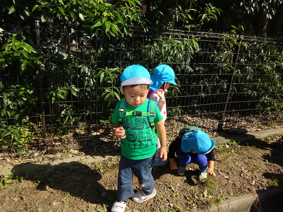 どんぐり探しが始まりました。どこにどんぐり落ちてるかな?
