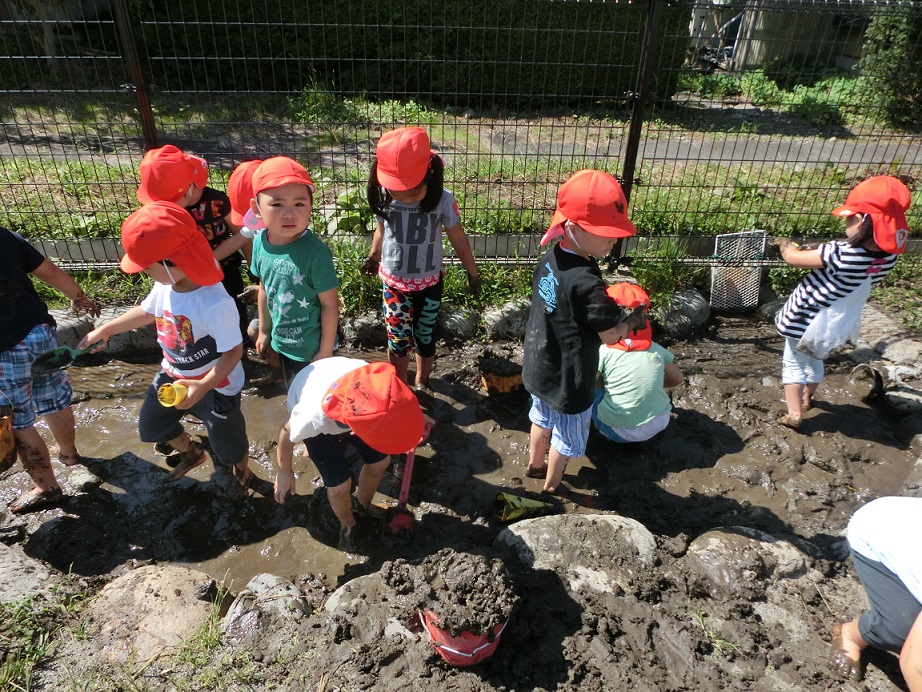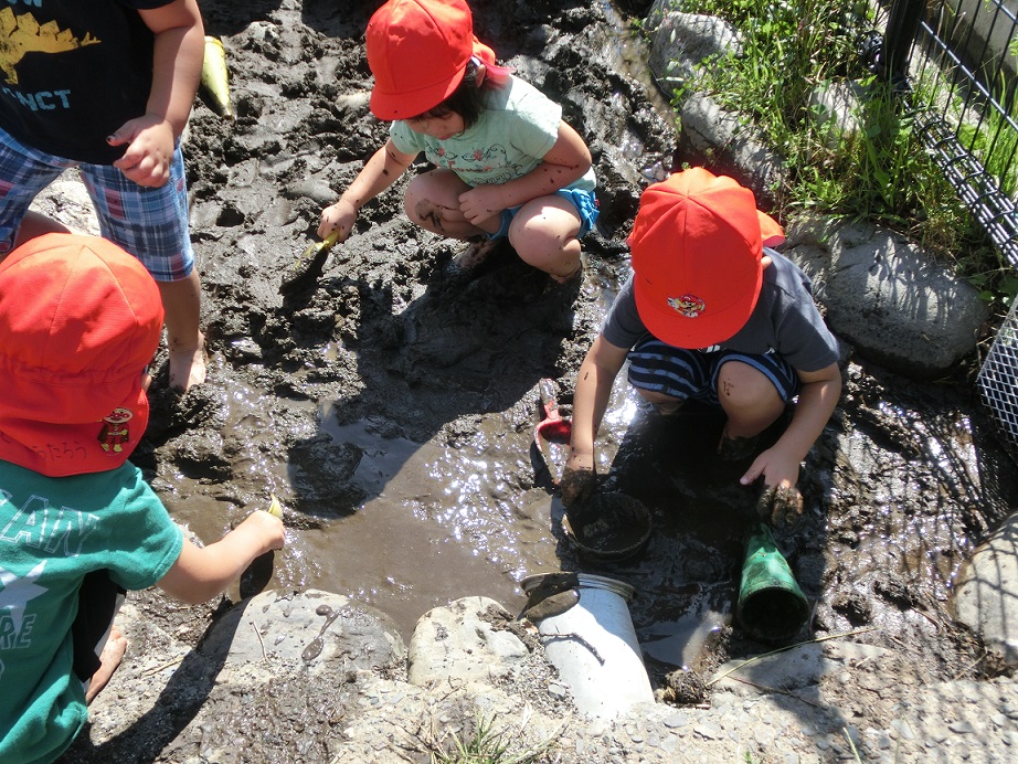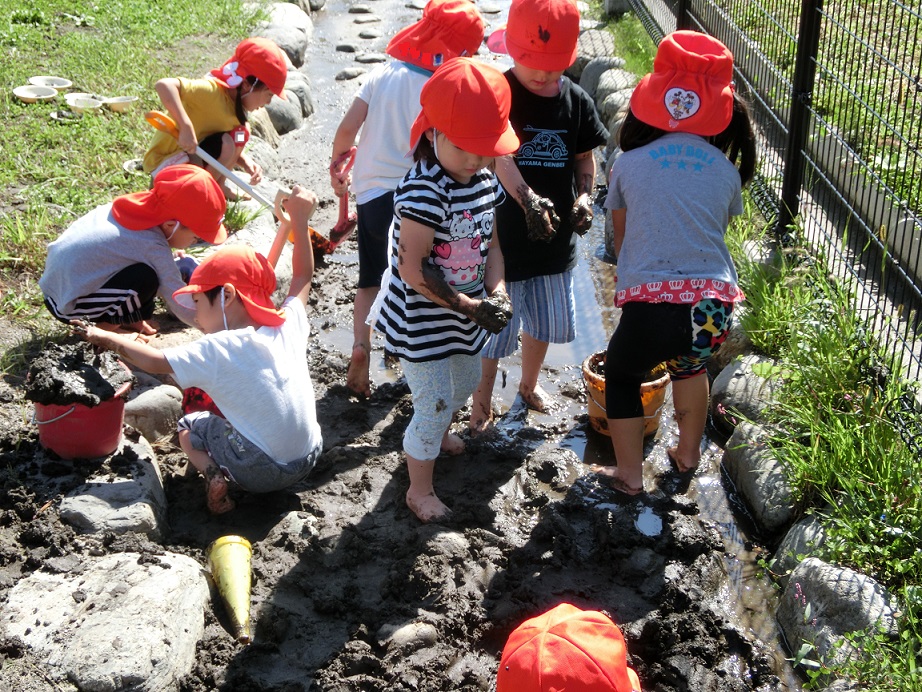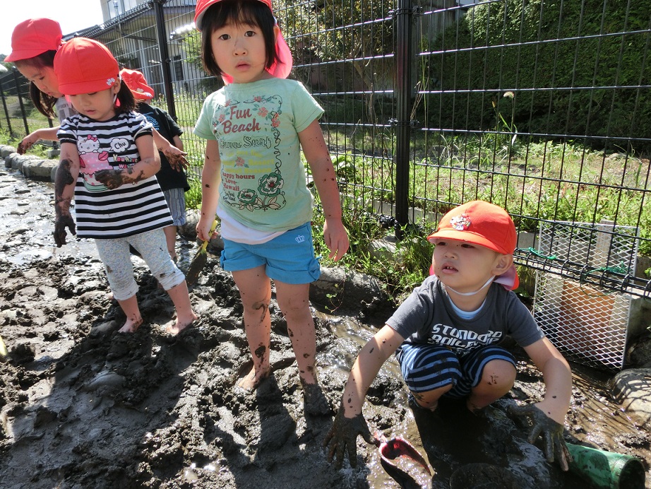 「泥遊び楽しい!」この笑顔が見られてうれしくなりました。