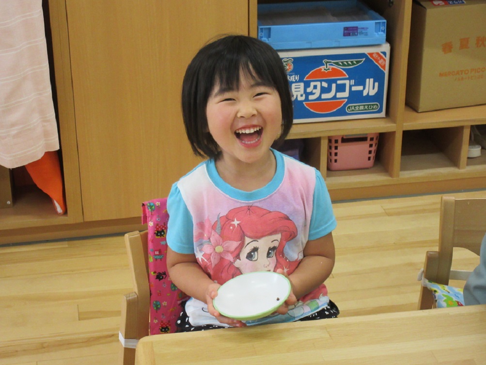 この子は種一つだけ残して完食!この笑顔が見られて保育士もうれしくなりました。