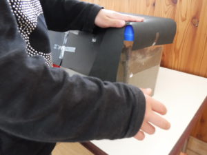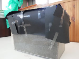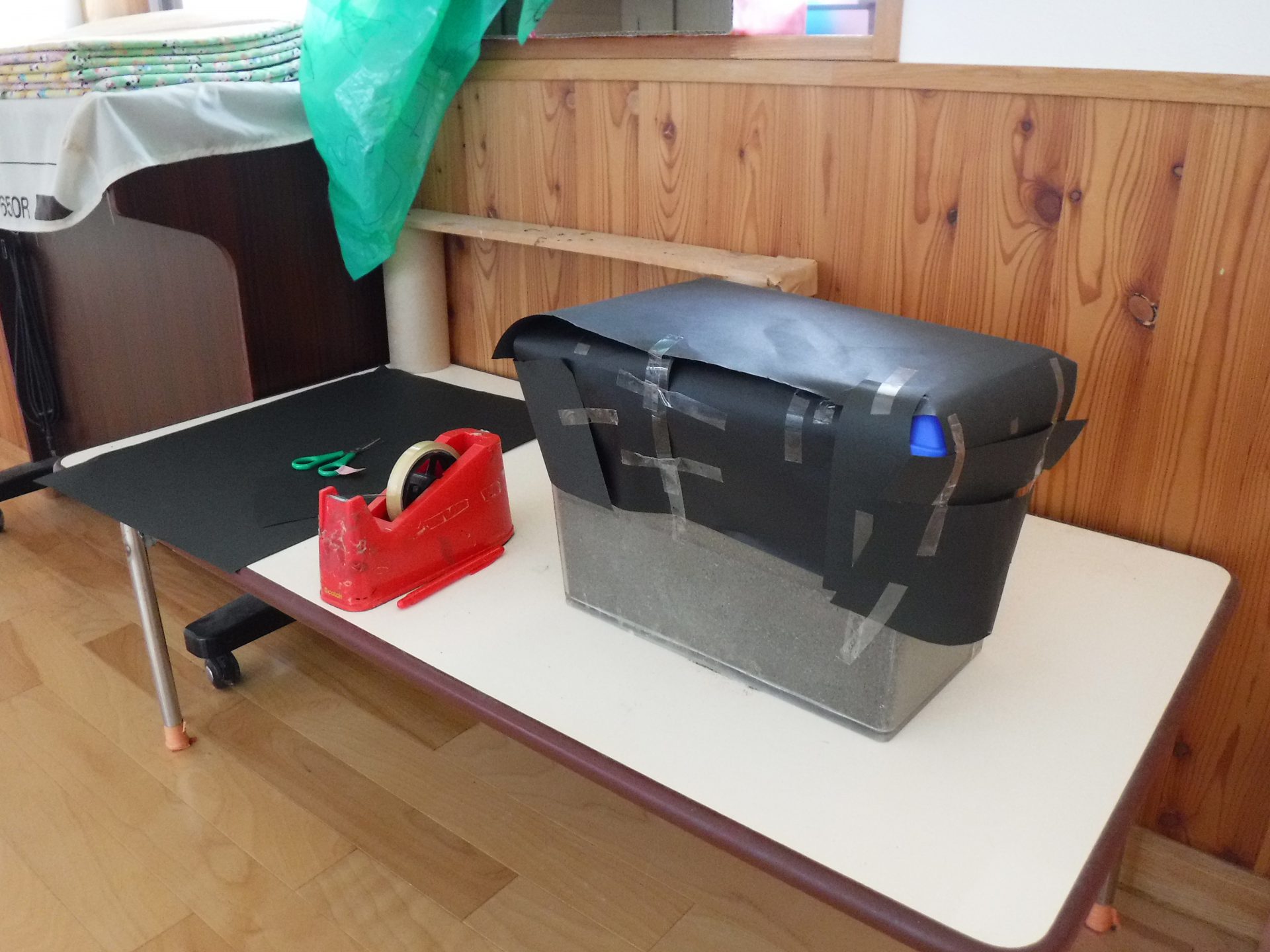 『光を通さない布など』の記述から、黒い折り紙を貼りました(横はがら空き)