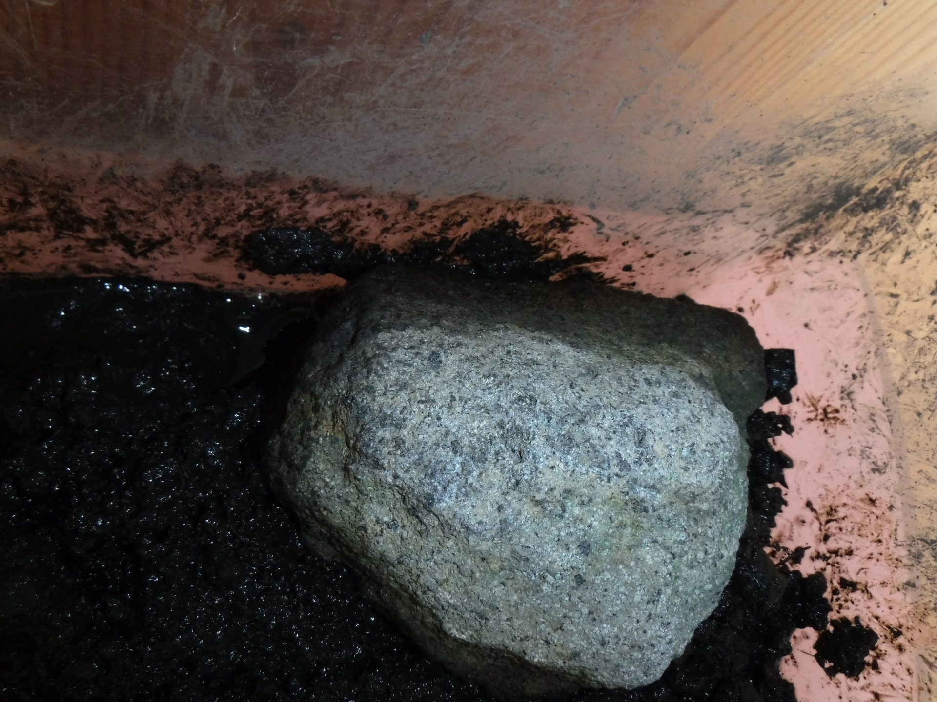 続いて、何故か小さいほうも同じところに後ろから潜り始めました。冬眠するのか?